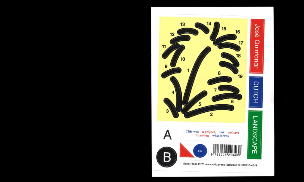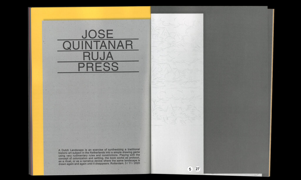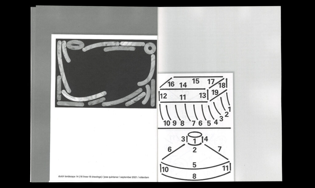 “Seven years ago, I came to live in the Netherlands. Six years ago, I started working on the concept of the Dutch landscape. Nature and its representation have been key themes in the art history of this country, from the landscape paintings of the golden century to the conceptual art of Jan Dibbets. Influenced by Gertrude Stein’s idea of landscape in literature and the constructive development of all kinds of games, my interest is not so much in the representation of nature, but in the nature of representation — that is, how the drawing is constructed. Or, when the representation of a landscape becomes another landscape.”
