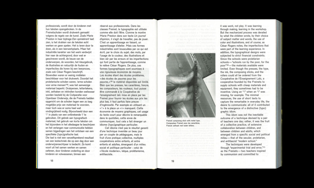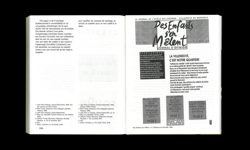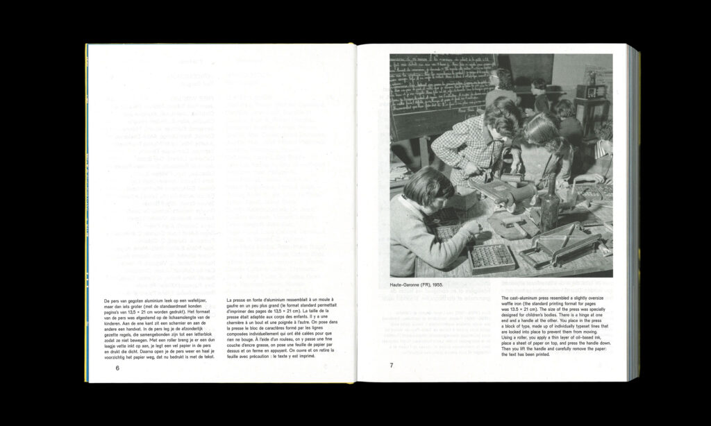 ‘Freinet Techniques’ is a project by graphic designer Paul Gangloff. It aims to publish a selection of texts written, typeset and printed by children on the presses of the Freinet schools between the 1920’s and 1980’s. Reproduced from the archives of the association les Amis de Freinet, the children’s texts are accompanied by three essays by graphic designer César Rogers, artist and researcher Marie Preston and Gangloff. The essays make a link between the ideological framework of the Freinet techniques and contemporary practices of graphic design, literacy and co-creation.