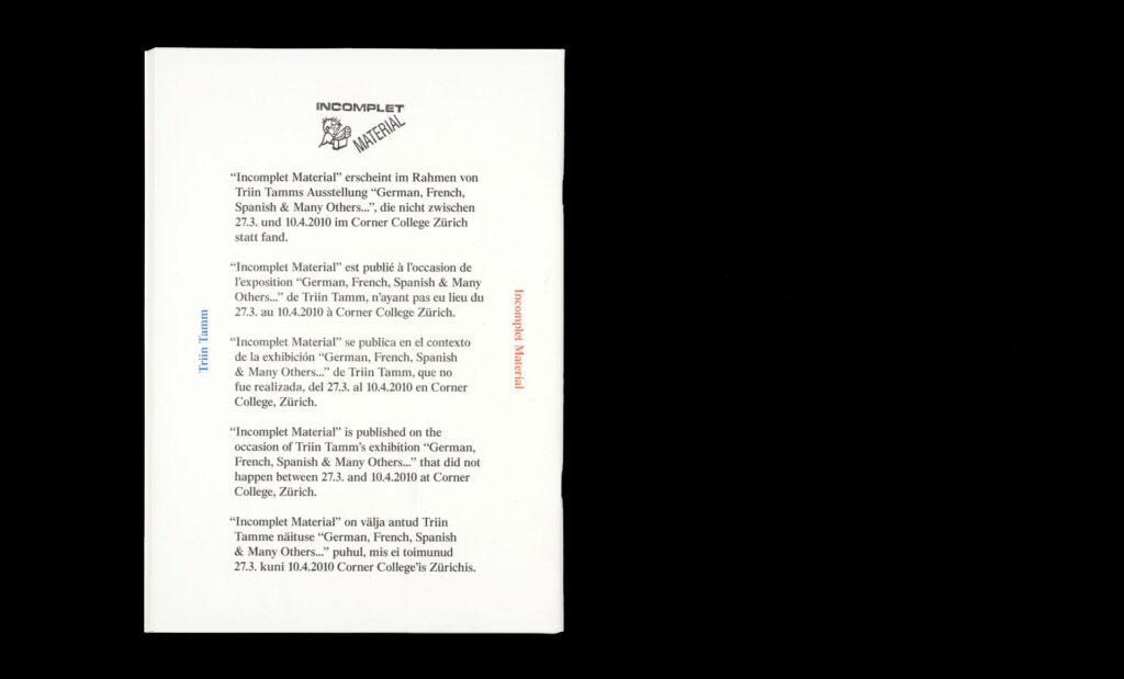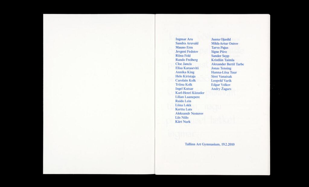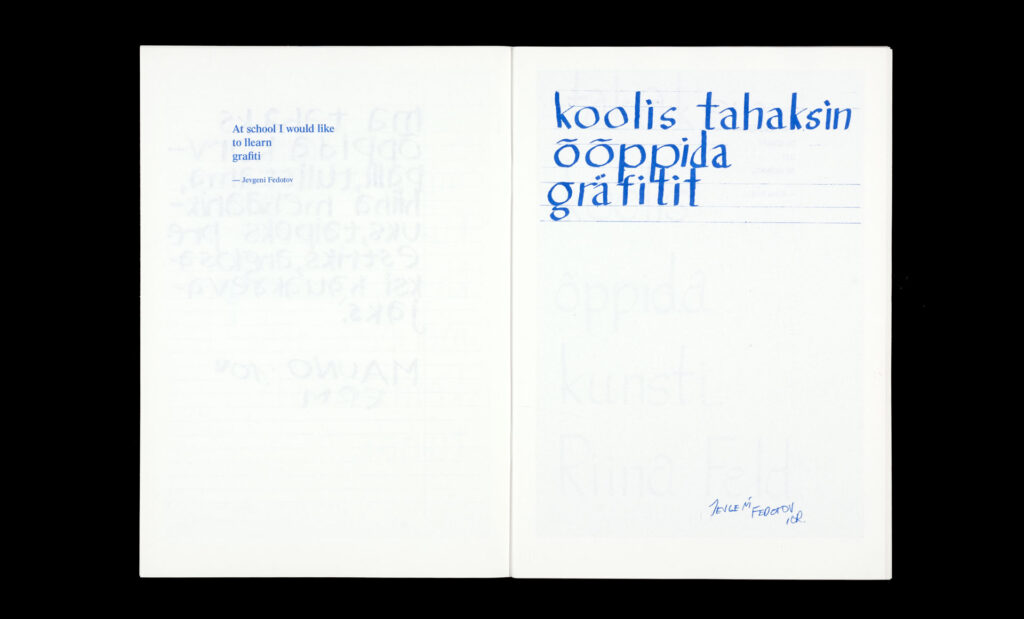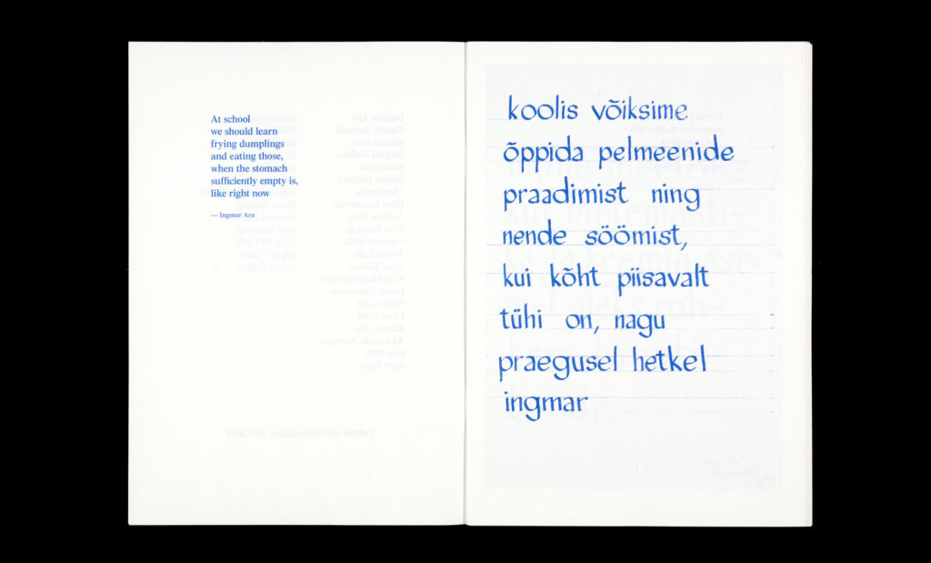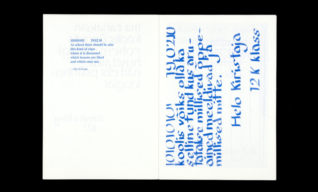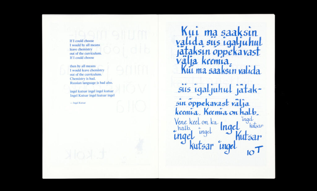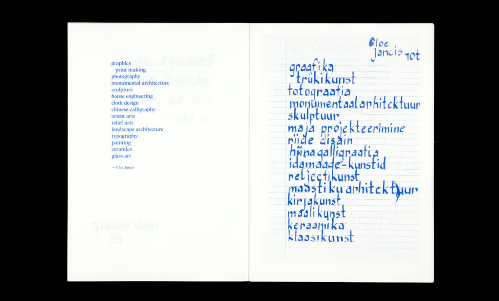 The students of calligraphy at the Kopli High School of Arts in Tallinn were asked what they would like to study at school. Published on the occasion of the exhibition “German, French, Spanish & Many Others…” which did not happen between 27.3. and 10.4.2010 at Corner College, Zürich.