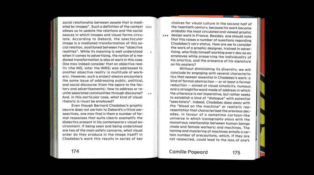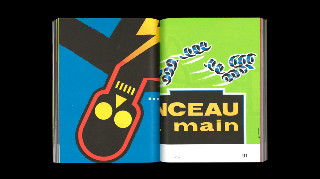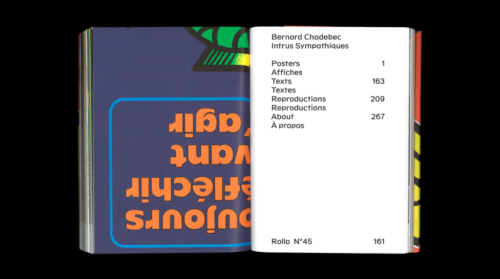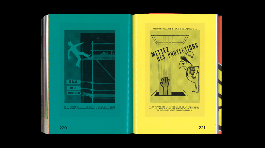 French graphic designer Bernard Chadebec was an employee of the INRS throughout his professional life, between 1965 – 2005. At this institute, he realised more than 300 posters around the topic of accident prevention, many of which contrast the often dull environments found in factories and production sites with an aesthetic derived from pop culture and humor. This book has helped to bring about the first monographic exhibition of Chadebec’s work at the Écomusée Creusot Monceau. The concept and design for Intrus Sympathiques was developed by students of the HfG Karlsruhe, in close collaboration with Olivier Lebrun and Urs Lehni.