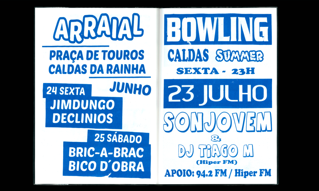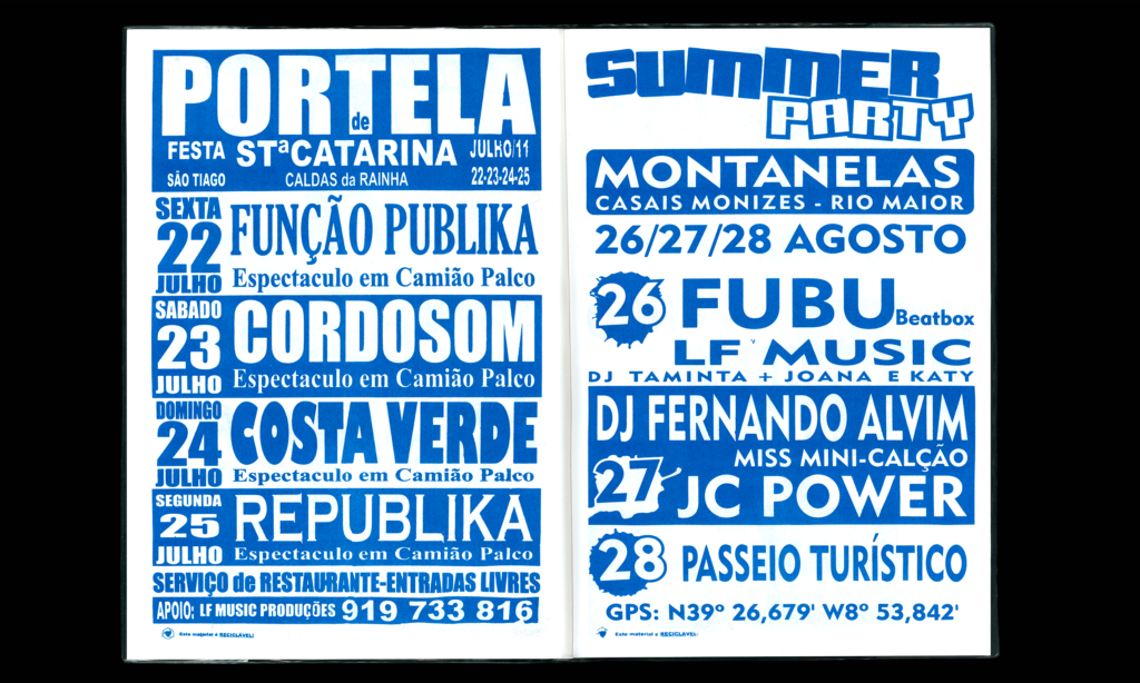 Muita Animação showcases a selection of Portuguese party posters that are very prominent in the local landscape because of their bold design as well as their unique production method: Printed on plastic and mounted on streetposts and trees, they mostly survive the date they announce and therefore can even be seen on Google Streetview. Zurich Artist Noël Fischer started to collect these posters a few years back and has now — together with design studio Hammer — published them in this impressive A3-sized book. This collection might as well be Jan Tschichold’s worst nightmare.