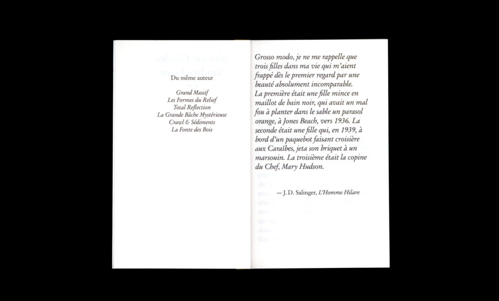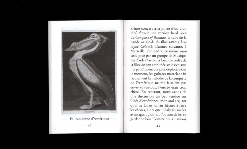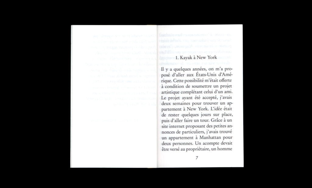 Swiss artist Jérémie Gindre goes on a trip to the U.S. He has to finish an artwork, but a lot happens along the way: He kayaks in New York, does a Rhode Island rush job, explores the Massachusetts coastline, gets on the Mohawk Trail (Kaboom!) and finally finds one big orchard. In other words, the contents include lobster, cheese, birds, rocks, books, movies, conceptual art, natural science, naturism, humanism, whale, apple. Including 14 black and white figures.