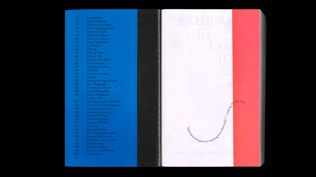 A parrot can be trained to repeat the sounds we make when we speak. But what does a parrot say? “Taxidermy for Language-Animals” examines language fragments from different practices — philosophy, literature, visual art — by exploiting some of our linguistic habits and tools. This book includes examples of ordinary language trapped in images. Games we play with language and games language plays with us are introduced. Like language itself, language-games are based on perception, habit and memory and are played in collaboration with others.