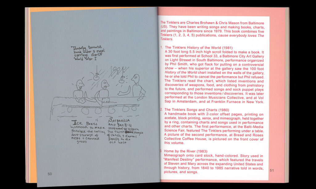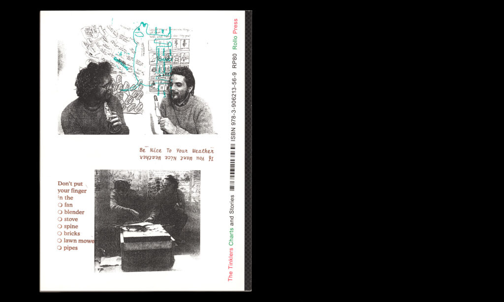 The Tinklers are Charles Brohawn & Chris Mason from Baltimore (US). They have been writing songs and making books, charts, and paintings in Baltimore since 1979. This book combines five Tinklers (1, 2, 3, 4, 5) publications, cause everybody loves The Tinklers.
