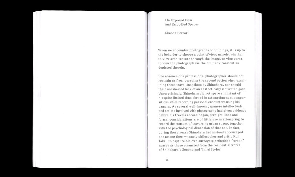 Besides designing buildings, the celebrated Japanese architect Kazuo Shinohara (1925–2006) also travelled extensively, always with a camera in hand. Presented here is a selection of his rarely seen colour slides that were primarily intended for personal use. The majority are quick snapshots taken while casually moving through cities – street scenes, impressions of the cityscape, and monumental buildings – in order to record details, unusual perspectives, and sometimes merely oddities. Selected from five significant overseas journeys Shinohara made between 1972 and 1985, the pictures constitute the diary of a seasoned architect. With a new essay by Simona Ferrari. Designed by Elektrosmog.