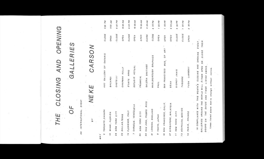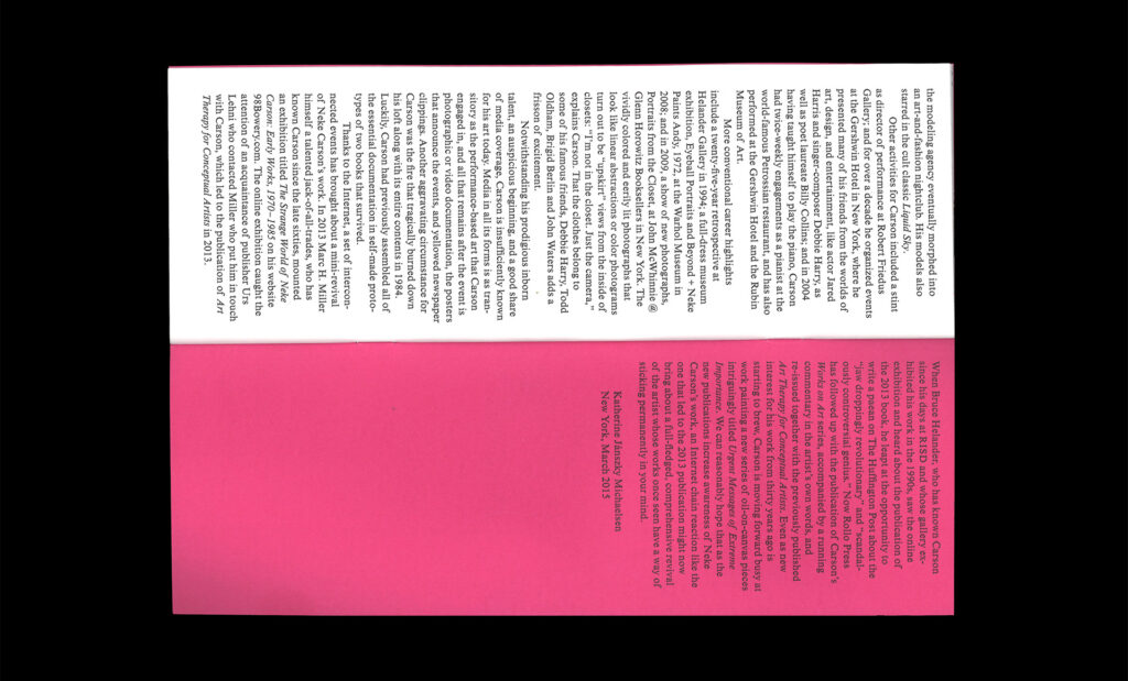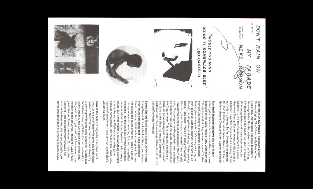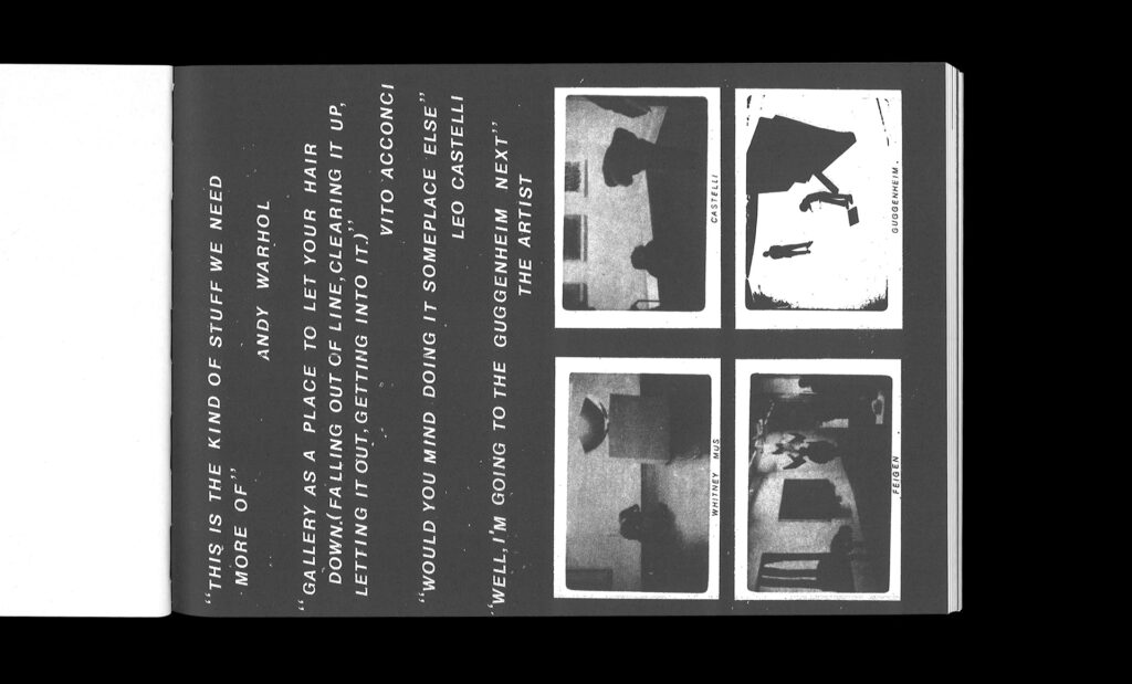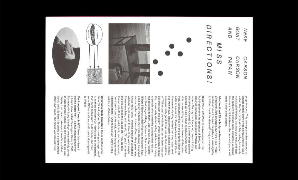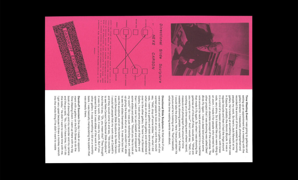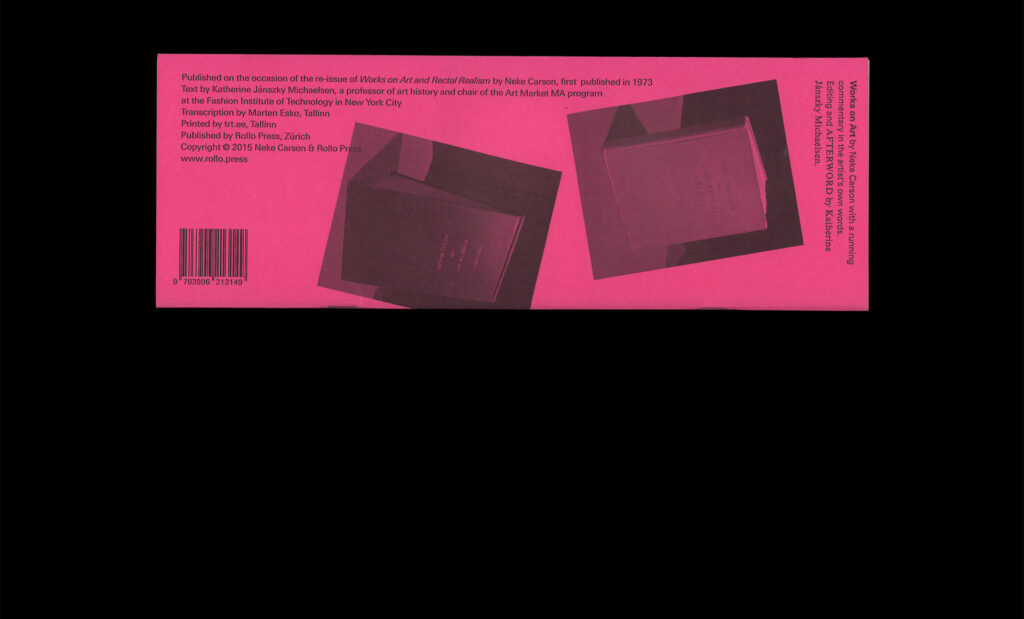 This book documents Neke Carson’s activities in the 70’s. He took the art he found in galleries and turned the paintings and sculptures into Readymades. He didn’t go to the hardware store to look for found objects — he went to Leo Castelli’s and found art. Orignially self-published by Carson in 1973, this reprint is extended with a running commentary in the artist’s own words, edited by Katherine Jánszky Michaelsen.